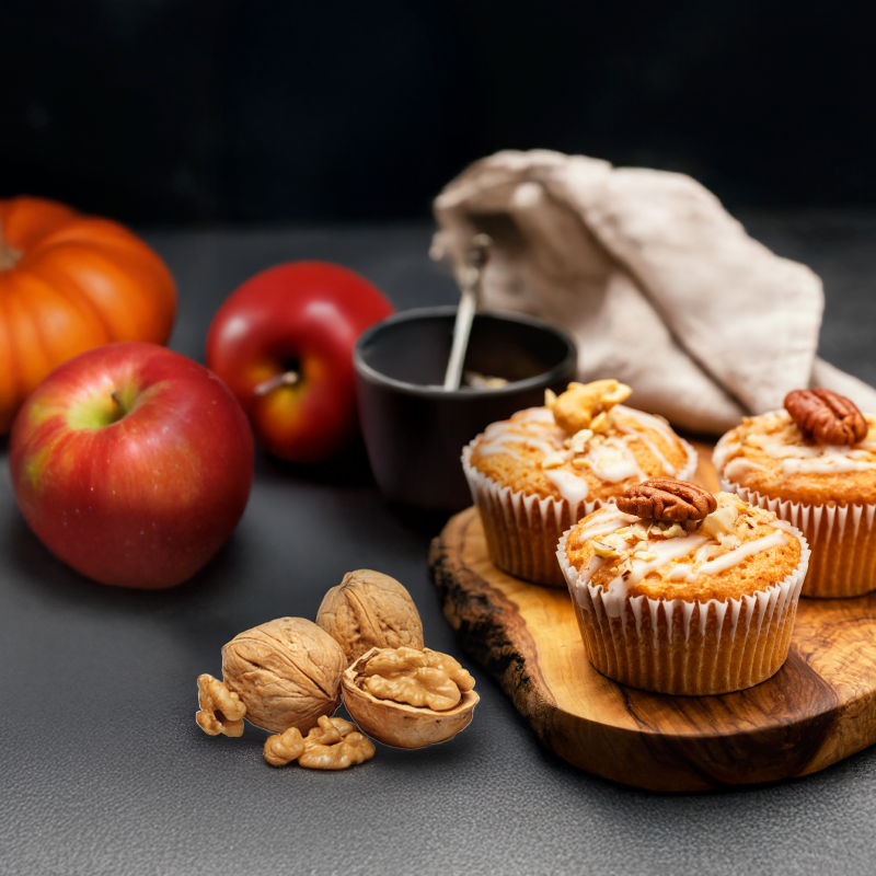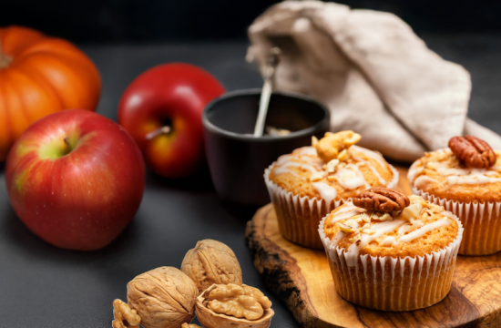 Moliūgų ir obuolių keksiukai su cinamonu ir riešutais